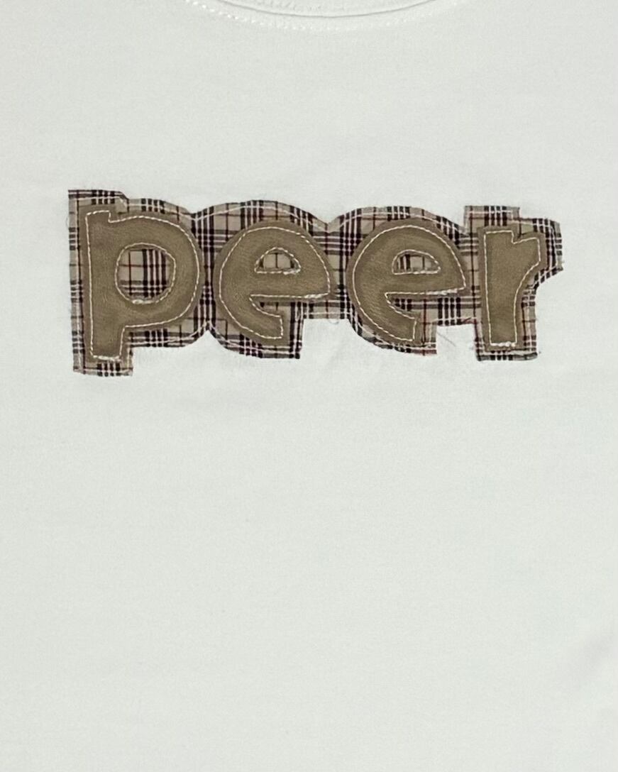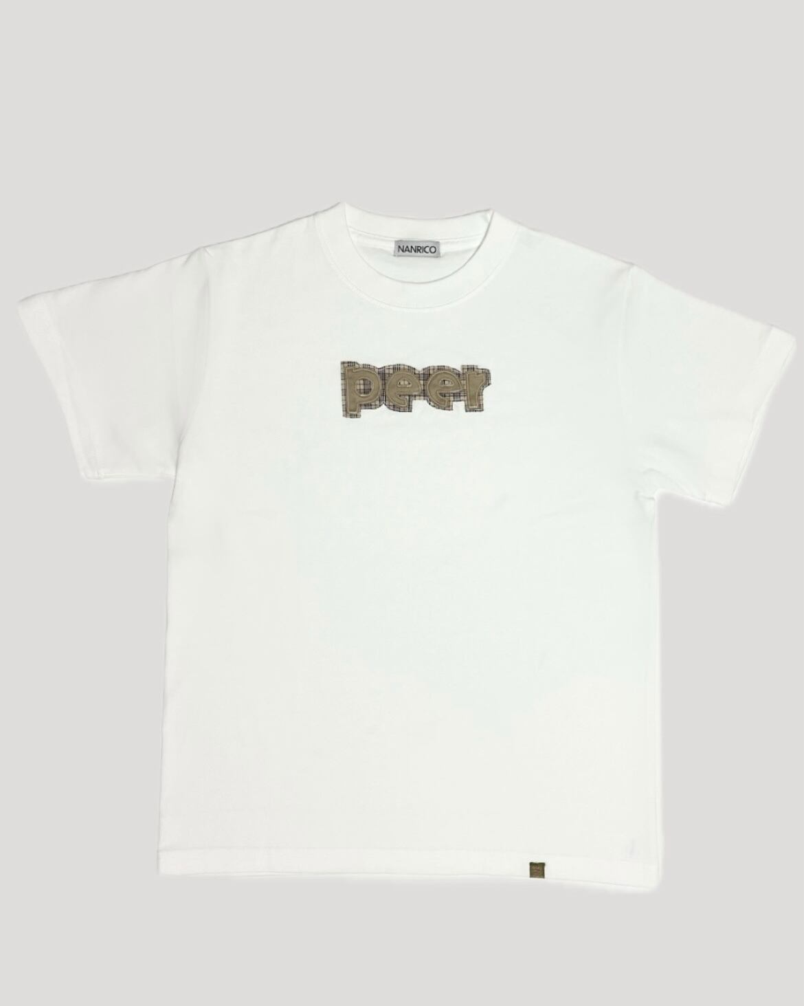 チェック柄とチノ素材を組み合わせたロゴTシャツ。